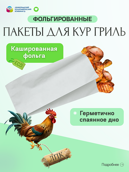 Такие пакеты используются для упаковки кур гриль, шашлыка, копчёных продуктов.