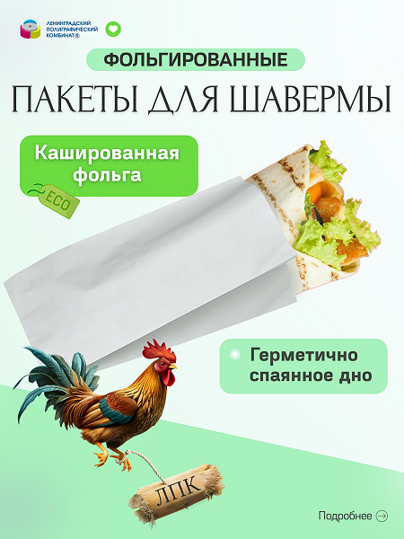 Компания «ЛПК» является производителем и оптовым поставщиком крафт-пакетов, идеально подходящих для упаковки различного фаст-фуда, такого как: